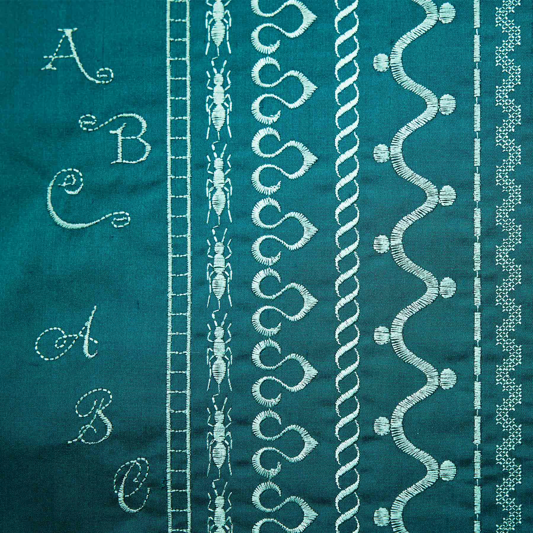 Einzigartige und innovative Stichtechniken: Ziergleitstiche, Einzel-, Doppel-, Dreifach,- Bänderstiche, 2-dimensionale Multicolorstiche.