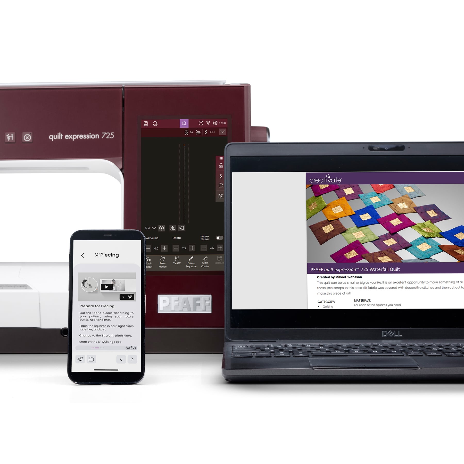 Verbinden Sie die neue expression™ 715 mit der einzigartigen digitalen Kreativ-Plattform CREATIVATE™. Die praktische CREATIVATE™ App unterstützt Sie mit grenzenlose Ideen. Updates laufen im Hintergrund – Ihre Maschine ist immer aktuell.